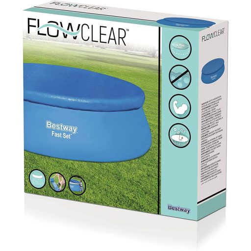 Bestway 457cm átmérőjü puhafalú medencéhez takarófólia A termék földfeletti puhafalú (felfújható karimájú) kerti medencéhez van méretezve!!! Fast Set TM Pools Használatával az éjszaka folyamán nem hül ki a medence víze, napközben meg jobban felmelegszik. Továbbá védi a medence vízét a külső szennyeződésektől is! Nem gumis!