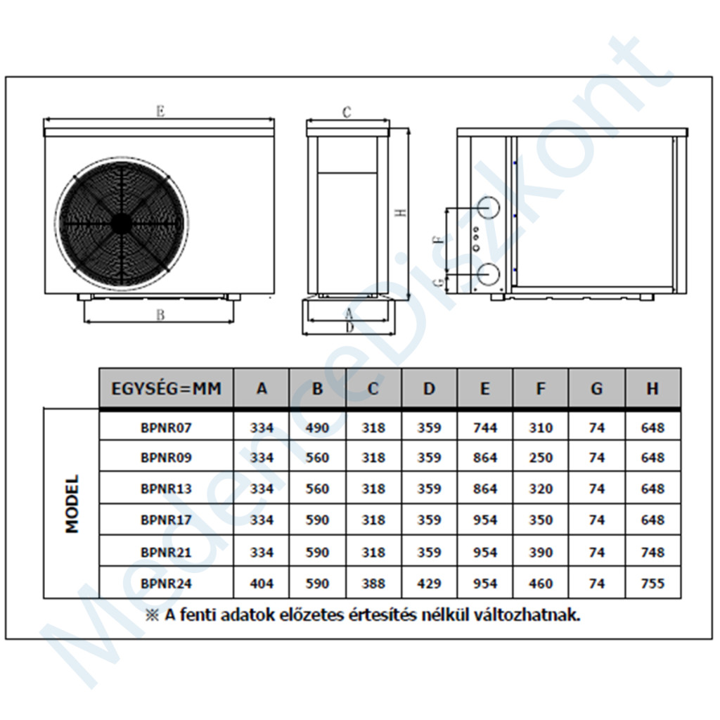 TERMÉKLEÍRÁS - Comfortline Inverter hőszivattyú Alkalmas a medence vízének fűtésére, hogy a víz hőmérséklete állandó legyen a medencében vagy a SPA-ban. Beltéri és kültéri medencékhez is ajánlott, 12 m³- 90 m³ közötti medence térfogat tartományhoz. A fűtési teljesítmény 20% és 100% között állítható be. Ez halkabb és költséghatékonyabb üzemet eredményez, miközben a COP érték akár a 12-es értéket is elérheti, így 50%-al hatékonyabban működik a vetélytársaival szemben. 0°C feletti működésre javasolt. Szezon kezdetekor, amikor nagy a fűtési igény, a Comfortline Inverter 100% kompresszor és ventilátor sebességgel működik a gyors felfűtéshez. Amikor a medencehőfokot tartani kell, a Comfortline Inverter magasabb COP érték mellett alacsony sebességgel működik az energiatakarékosság jegyében. Opcionálisan Wifi-vel is felszerelhető, így távolról is beállíthatja medencéje hőmérsékletét. Általános garancia 2 év Hőcserélő garancia 5 év Kompresszor garancia 2 év ENERGIATAKARÉKOS: A Comfortline Inverter medence hőszivattyú átlagos COP értéke 9; 26°C levegő/ 26°C víz /80% páratartalom esetén. Ez azt jelenti, hogy 1kW villamosenergia fogyasztással akár 9 kW hőenergiát termelhet, szemben a Be/Ki kapcsolásos hőszivattyú 5kW hőtermelésével, mivel annak COP értéke csak 5 körüli. CSENDES MŰKÖDÉS: A csendes DC-inverter kompresszornak, a kompresszor és a ventilátormotor alacsony fordulatszámú működési elvének köszönhetően a Comfortline Inverter medence hőszivattyú szupercsendes működést kínál 7dB (A) alacsonyabb hangnyomás mellett, ÁTLAG 50% -os kapacitásnál. LÁGY INDÍTÁS: Amikor a Comfortline Inverter medencefűtés bekapcsol, az áramfelvétele 0 A-tól egyenletesen növekszik, amíg el nem éri a névleges áramfelvétel értékét kb. 2 perc alatt. Ez nem terheli meg otthona villamosenergia-rendszerét. Ezzel szemben a Be/Ki üzemű hőszivattyú gyakori indítási áramfelvétele a névleges áram ötszöröse, ami terhet jelent a villamosenergia-rendszer számára. KÖRNYEZETBARÁT R32 GÁZ: Az R32-es hűtőközeg egy speciálisan tisztított fluorid. Környezetbarát gáz, az ózonlebontó képessége nulla, a GWP értéke is sokkal alacsonyabb, mint a régebbi hűtőközegeké. "FIGYELEM ! Higiéniai okokból vízáramba bekötött hőszivattyút nem vesszük vissza !
