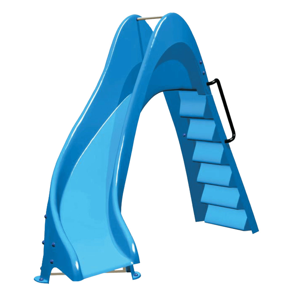 Kiváló minőségű gyerekbarát csúszdák csúszásmentes lépcsőfokokkal, magas korlátokkal minden medencetípushoz.