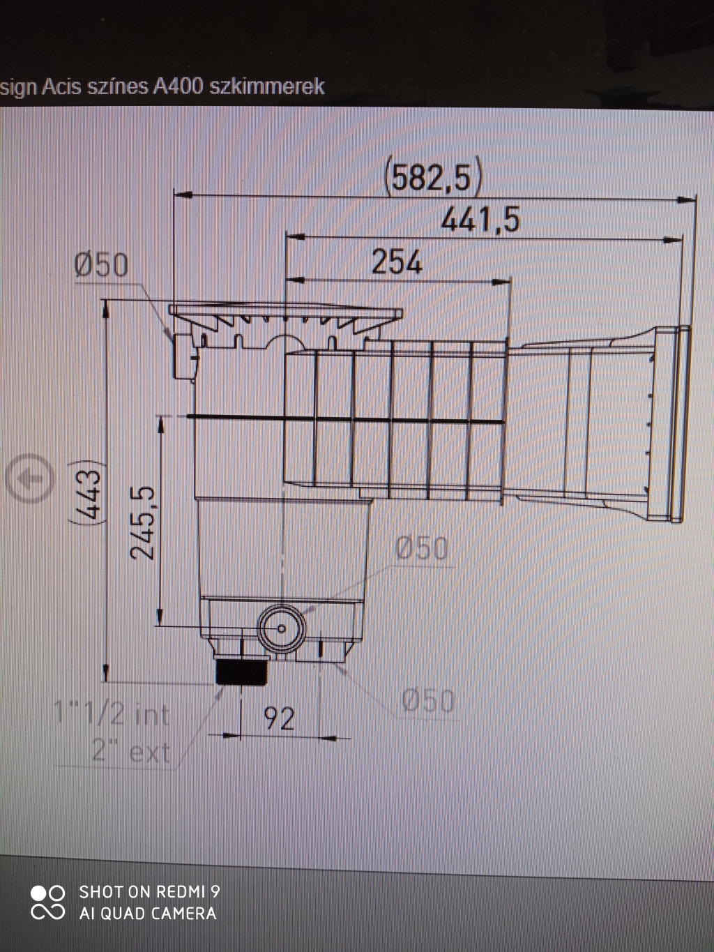 Design szkimmer betonos/fóliás A400 szürke 6/4"BM / 2"KM / D50