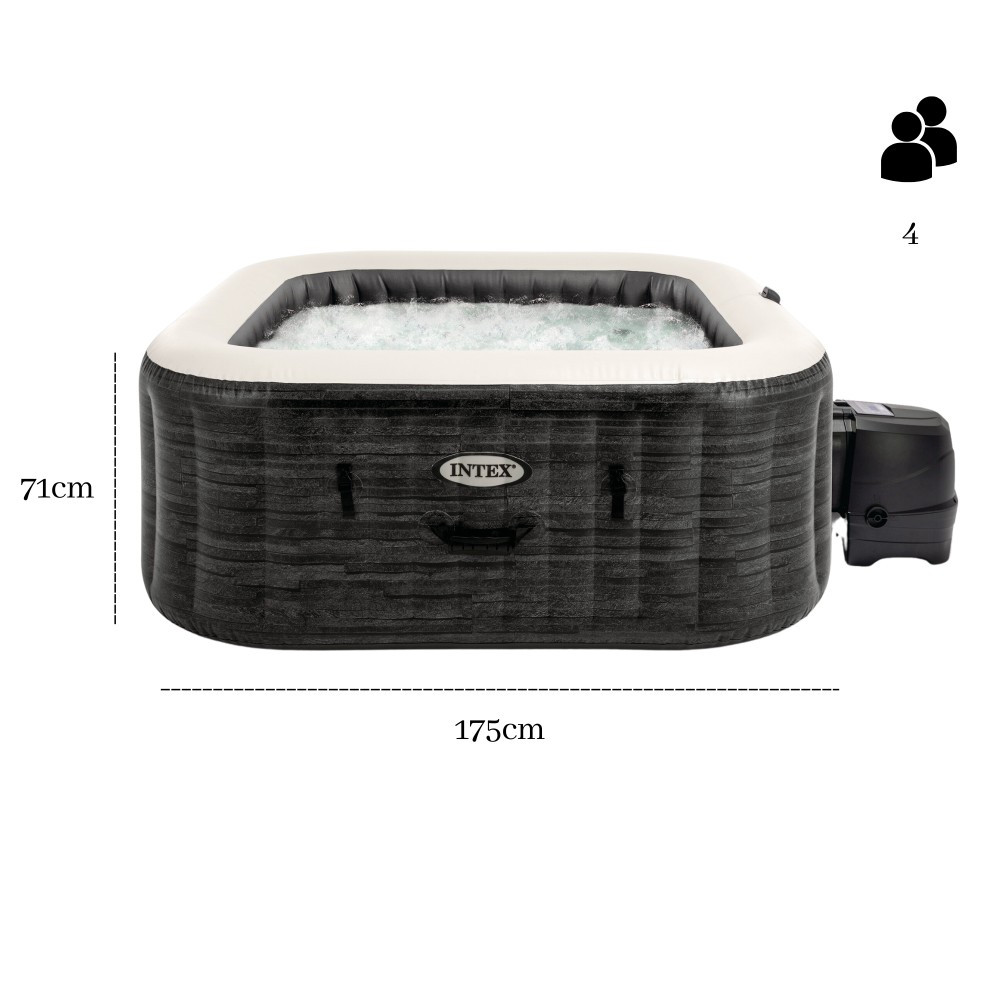 INTEX PureSpa Greystone Deluxe jakuzzi 4 személyes szögletes 175 x 175 x 71 cm szürke / fehér #28450