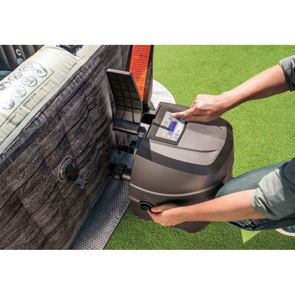 Műszaki adatok: Férőhelyek száma: 2 felnőtt (átlagos testalkatú) + 2 gyerek JET mini befúvók száma: 140db Szín: pala szürke famintás (kívül) , fehér (belül) Külső mérete: 173 x 173 x 71cm Külső szélesség: 173cm Külső átló: 211cm Belső hasznos (négyzetes) méret: 122 x 122cm Belső hasznos szélesség: 122cm Belső hasznos átló: 160cm Magasság: 71cm Vízmagasság: max 51cm Vízkapacitás: 795 liter Fólia vastagság: 0,7 mm Gépészet méretei: 45x38x43 cm Papírszűrős vízforgató teljesítménye: 1741 liter/óra Papír szűrőbetét típusa: Intex S1 (Intex 29001/E) Maximálisan felfűthető vízhőmérséklet: 40°C Vízmelegítés gyorsasága: 1,5 ~ 2,5°C / óra Üzemi feszültség: 220V/50Hz Légkompresszor fogyasztása: 800W Fűtés fogyasztása: 2200W Vízlágyító rendszer fogyasztása: 10W Termék nettó súlya: 41kg Termék becsomagolt súlya: 50kg Vízzel feltöltött súly: ~836kg Csomag tartalma: - pezsgőfürdő fólia váz - külső hővédő burkolat - műbőr borítású thermo védőtakaró - vízforgató gépészet és vezérlő egység - 2db Intex S1 papírszűrőbetét (1 csomag) - 2db jó minőségű ergonomikus fejpárna - 1db RGB ledes hangulatvilágítás Garancia : 3 év jótállás a gépészetre (vezérlőegységre) 24 hónap szavatosság medencetestre és kiegészítőkre