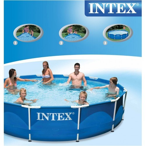 Fémvázas medencetest, 2 m³/h teljesítményű papírszűrős vízforgató szükséges hozzá. Megrendelhető ezen a linken: https://www.medencediszkont.hu/termek/intex-papirszurosvizforgato2m3h/ . Az erős PVC medence testet csőváz tartja, amelyek a testen kialakított füleken keresztül tolva merevítik a szerkezetet. Tartalma: medencetest Telepítéshez szükséges terület: legalább 366 x 366 cm Telepítéshez szükséges minimális idő: 30 perc (2 emberrel) Űrtartalom: 6503 Liter Súly: 22,6 kg