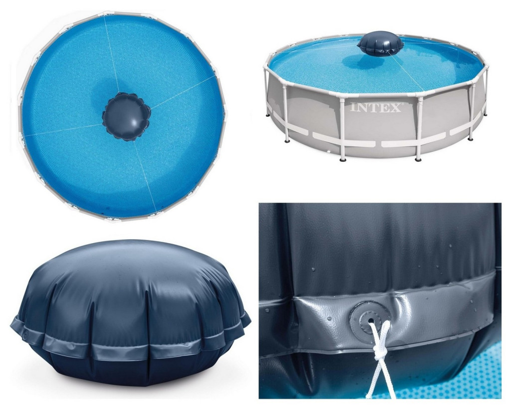 Intex takaró fólia alá felfújható téliesítő párna #28099 Jellemzők : • Téli használatra is alkalmas • Fenntartja a takaró fóliát és megakadályozza a víz felhalmozódását a takaró fólia felett. • Maximum 732 cm -es kör medencére használható • Minden Intex takaróval kompatibilis Csomag tartalma: • felfújható párna • 4db rögzítő zsinor Használati útmutató: A párna kézi, láb, vagy elektromos pumpával fújható fel. A teljes kapacitásának körülbelül 60%-70%-ára fújható fel, ami körülbelül 49 - 51 cm -es magasságot jelent. Tilos teljesen felfújni a párnát!