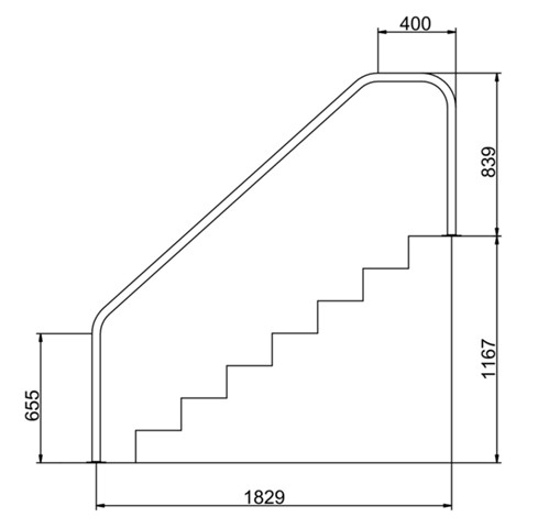 Medence lépcső korlát - 1167 x 1829 - 460mm