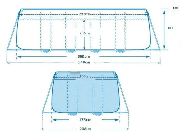 Prizma Fémvázas Szögletes medence 300 x 175 x 80cm #26784